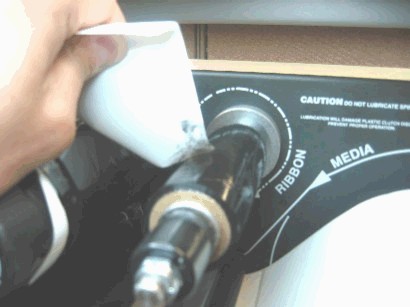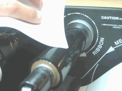 警告:请不要尝试使用内碳的打印碳带,使用不正确的碳带(内碳)能破坏打印机碳带供应轴和或打印头。